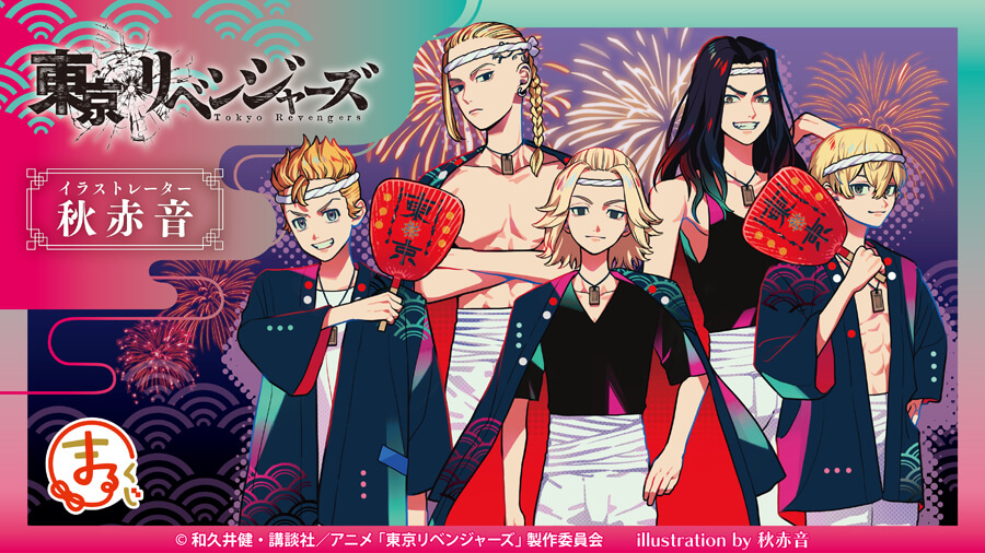 今回はTVアニメ『東京リベンジャーズ』より【祭り】をコンセプトに、ビビットな色彩や独自性のある配色が特徴のイラストレーター「秋赤音」氏の描き下ろしイラストを使用した商品が登場!