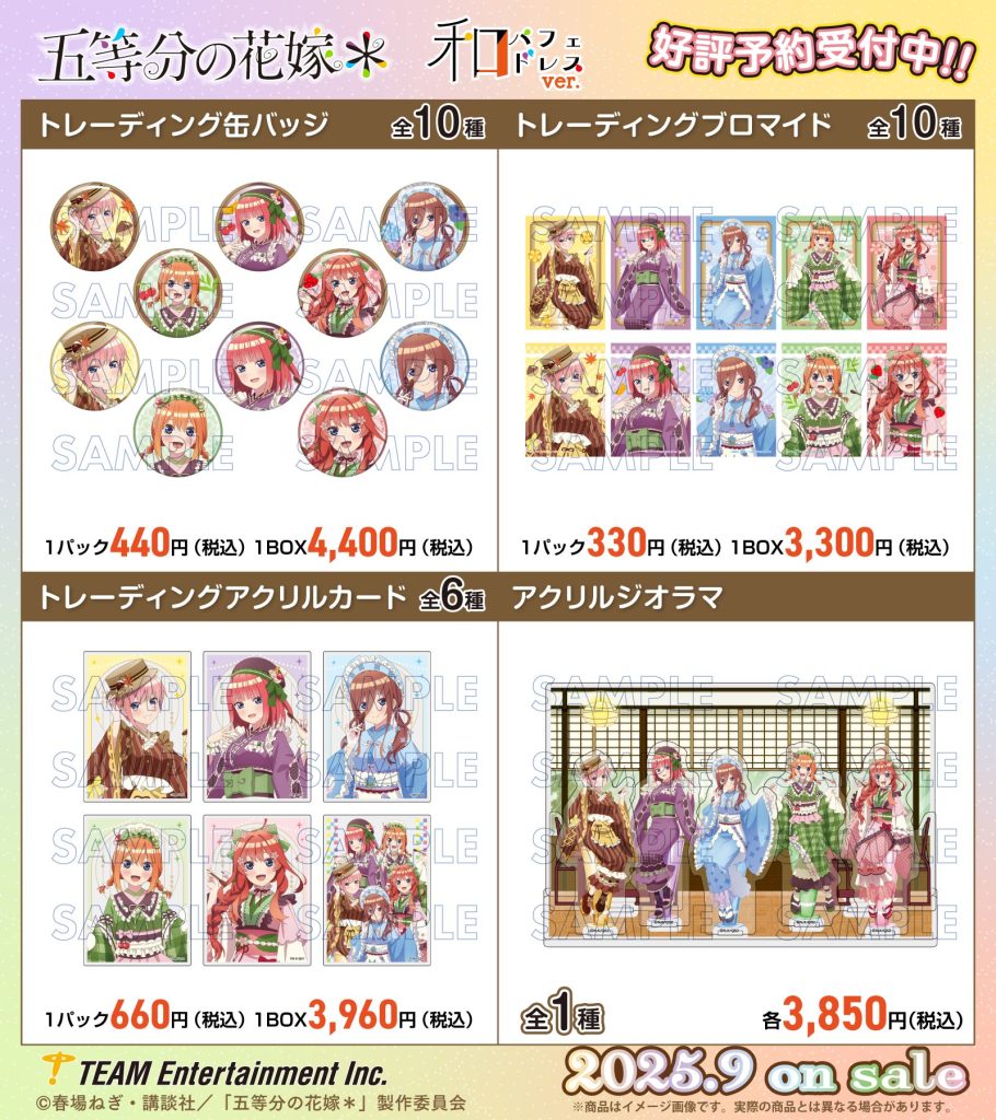 株式会社エディア(本社:東京都千代田区、代表取締役社長:賀島 義成)の子会社、株式会社ティームエンタテインメント(本社 :東京都千代田区、代表取締役社長 :賀島 義成 以下 :ティームエンタテインメント)は、2025年9月に、TVスペシャルアニメ『五等分の花嫁*』のオリジナルグッズの発売を決定したことを、お知らせいたします。