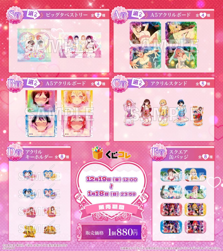 株式会社エディア(本社:東京都千代田区、代表取締役社長:賀島 義成)の子会社、株式会社ティームエンタテインメント(本社 :東京都千代田区、代表取締役社長 :賀島 義成 以下 :ティームエンタテインメント)は、2025年12月19日(金)12:00より『eフィーバー彼女、お借りします』のオリジナルグッズを、インターネットで購入できるオンラインくじサービス『くじコレ』にて販売開始したことをお知らせいたします。